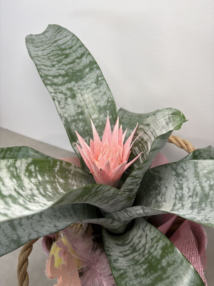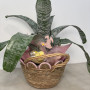 Rendi speciale la tua Pasqua con questa elegante composizione in cesta di juta, arricchita da una pianta di Acmea, apprezzata per il suo aspetto decorativo e la sua lunga durata.